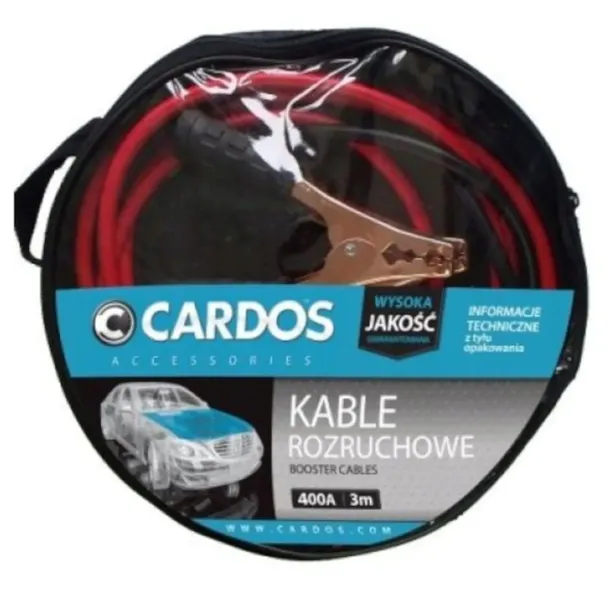 Tylko połączenie tych elementów sprawi, że problemy z uruchomieniem auta nie popsują Ci dnia i szybko ruszysz z miejsca. Jeśli chcesz się uchronić przed podobnymi sytuacjami zadbaj aby dobrej jakości przewody rozruchowe zagościły w bagażniku Twojego auta. Profesjonalne kable rozruchowe CARDOS to wysokiej jakości, miedziane przewody zaprojektowane z myślą o zapewnieniu jak najlepszego przewodnictwa prądu i szybkiego uruchomienia auta. Przeznaczone do ładowania prądem o maksymalnym natężeniu 400 Amperów, wyposażone w mocne, powlekane miedzią dla lepszego przewodnictwa - klamry, o szerokim chwycie, z zębami zapewniającymi mocny i bezpieczny zacisk na trzpieniu akumulatora. 3-metrowa długość przewodów zapewnia wygodne podpięcie się pod drugie auto i awaryjne uruchomienie silnika. Dzięki nim nie będziesz musiał podjeżdżać maksymalnie blisko samochodu, również takiego który ma akumulator ulokowany w bagażniku. Odporne na niskie temperatury, dzięki czemu nie sztywnieją na mrozie, utrudniając podłączenie. Przewody spakowane są w wygodny i poręczny pokrowiec, wykonany z trwałego materiału, zapinany na zamek błyskawiczny. Nie zajmują dużo miejsca, przez co łatwo utrzymać porządek w miejscu ich przechowywania. Doskonale nadają się do zastosowania o każdej porze roku, w warunkach przydomowych lub w trasie.