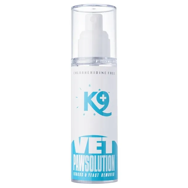 Preparat leczniczo-pielęgnacyjny K9 Vet Paw Solution, przeznaczony do łap, nosa, fałd skóry, przestrzeni pomiędzy palcami itp. Szybko eliminuje bakterie, grzyby, drożdże i wirusy odpowiedzialne za powstawanie stanów zapalnych i mogących być przyczyną nieprzyjemnych dolegliwości, takich jak ból, swędzenie, zaczerwienienie, łuszczenie, rogowacenie naskórka. Jego działanie oparte jest na delikatnych dla skóry, ale niezwykle skutecznych substancjach. W przeciwieństwie do innych preparatów o podobnym działaniu, ale zawierających chlorcheksydynę, K9 Vet Paw Solution nie powoduje przesuszenia ani podrażnienia naskórka. Dodatek aloesu oraz prowitaminy B5 koi oraz przyśpiesza gojenie stanów zapalnych, nawilża, zmiękcza i regeneruje zrogowaciały naskórek, zmniejsza zaczerwienienie.