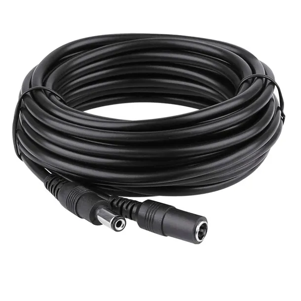 Przedłużacz DC Jack 5.5 x 2.1 męski na żeński o długości 15m pozwala na wygodne podłączenie urządzeń w przypadku gdy fabryczny przewód okazuje się niewystarczający.