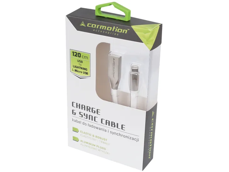 Kabel zakończony wtyczkami typu USB i Lightning / microUSB, może służyć zarówno do ładowania telefonów i tabletów, jak i do synchronizacji.