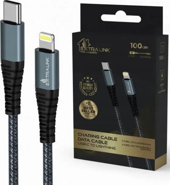 - Nazwa produktu: Extralink Smart Life 60W, USB-C - USB-C 120cm, PVC, 5V 2.4A/3A, szary