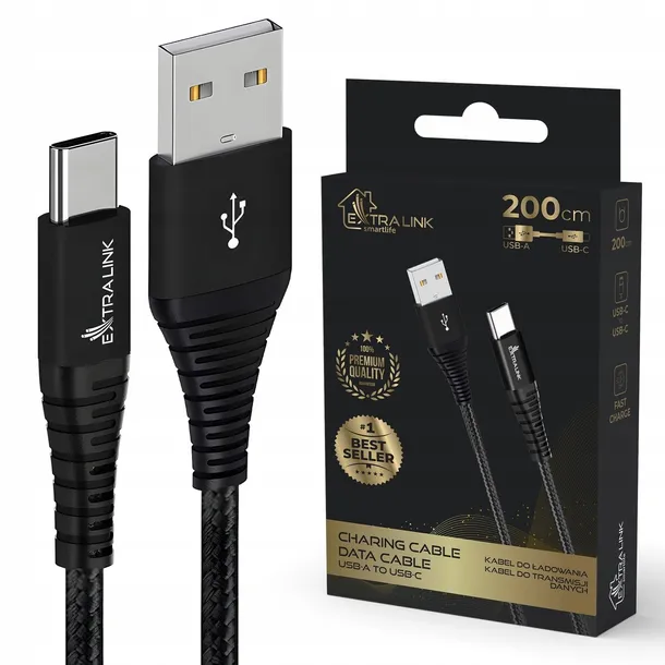 Kabel Extralink USB A – USB C o imponującej długości 2 metrów, zapewniający efektywne ładowanie Twoich urządzeń. Z mocą 15W oraz napięciem 6.5V 3A, ten czarny kabel to idealne rozwiązanie dla osób, które cenią sobie wydajność i niezawodność w codziennym użytkowaniu.