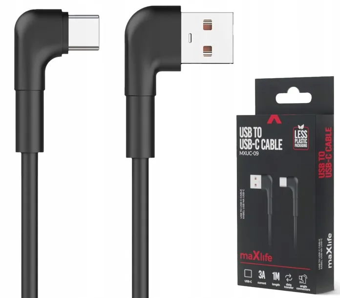 KABEL KĄTOWY 3A Maxlife USB - USB typ C