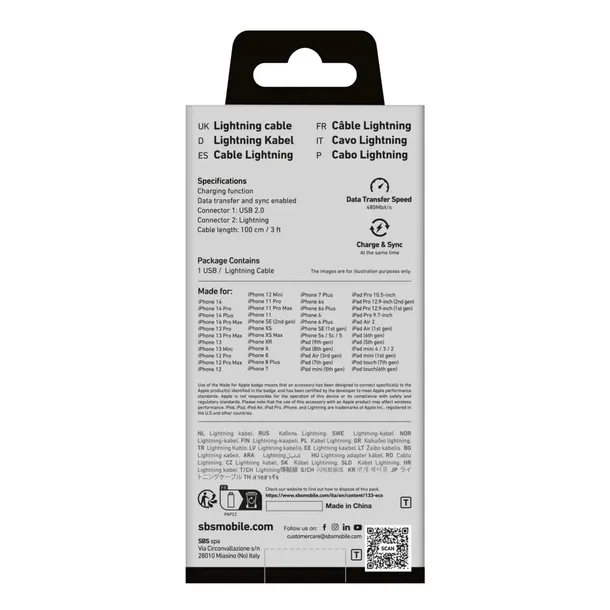 Dzięki certyfikacji MFi kabel SBS TECABLEUSBIP589A spełnia rygorystyczne standardy Apple, gwarantując doskonałą kompatybilność i bezpieczeństwo dla Twojego urządzenia.