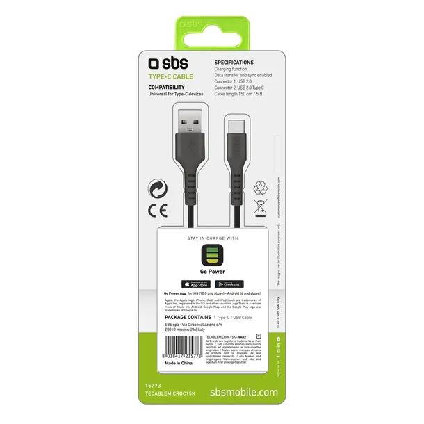 Kabel SBS TECABLEMICROC15K USB-A - USB-C 1,5m - czarny
