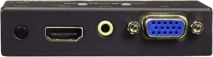 Przełącznik A/V zawiera wbudowaną konwersję HDMI, umożliwiającą podłączenie źródła wideo HDMI i VGA do tego samego wyświetlacza VGA, bez użycia dodatkowych przejściówek lub skalerów.