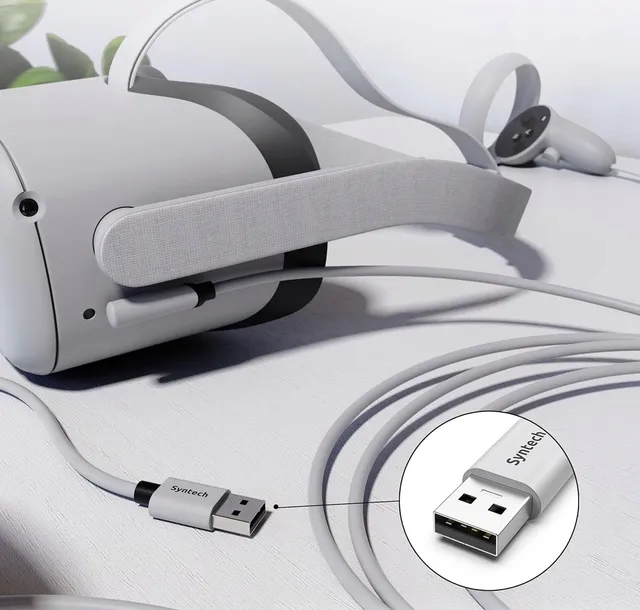 - Kabel Syntech Link łączy Quest2 z komputerem PC, dzięki czemu możesz grać we wszystkie aplikacje oraz gry Steam VR, zapewniając doskonałe wrażenia PC VR. Kolor i wygląd kabla idealnie pasuje do zestawu słuchawkowego Quest2.