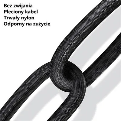 Nylonowy splot zapewni długie i bezawaryjne użytkowanie przewodu, bez ryzyka mechanicznych uszkodzeń.