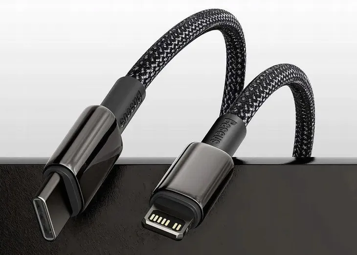 Elastyczny, wytrzymały kabel Baseus Data posiadający złącza w standardzie USB-C oraz Lightning umożliwia przesyłanie danych oraz ładowanie baterii w urządzeniach Apple.
