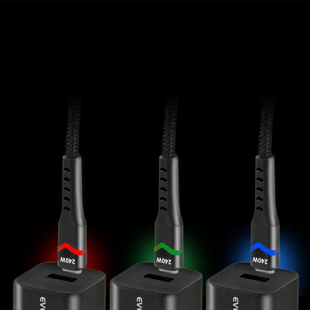 Jedno złącze po podłączeniu kabla do urządzenia — podświetla się w kolorach RGB. Dzięki temu z łatwością znajdziesz swój telefon nawet w największych ciemnościach.