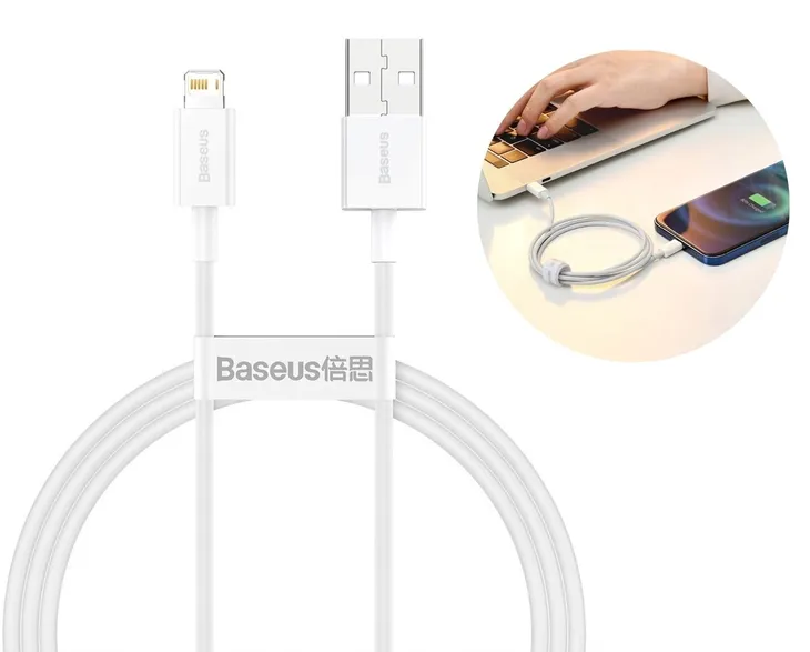 Kabel BASEUS SUPERIOR Lightning to kabel dedykowany do urządzeń z portem lightning. Posiada wtyki USB oraz 8p usytuowane w specjalnie wyprofilowanych i wzmacnianych obudowach, które zapewniają bezpieczeństwo i gwarancję długotrwałego użytkowania. Dodatkowo wbudowany inteligentny chip dopasuje optymalne natężenie dla ładowanego sprzętu, zwiększając przy tym efektywność ładowania oraz bezpieczeństwo baterii. Owinięty w specjalny rzep ułatwiający transport - koniec z poplątanym przewodem! Kabel o długości 150cm pracuje z maksymalnym natężeniem 2.4A.