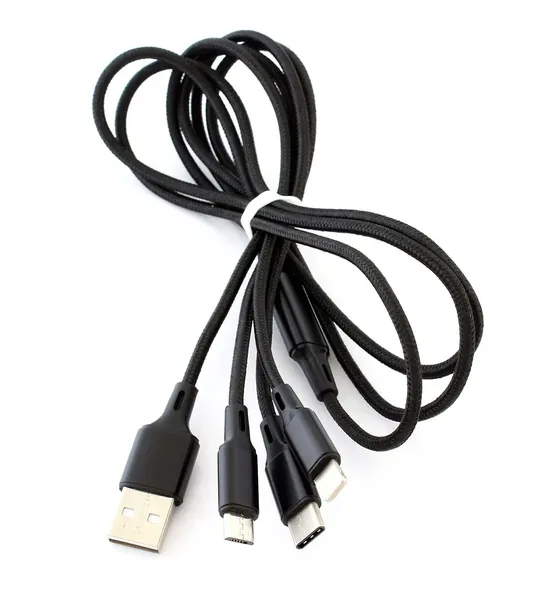 Kabel USB 3w1 z oplotem to doskonałe rozwiązanie ułatwiające naładowanie telefonu oraz innych urządzeń elektronicznych. Umożliwia podłączenie do ładowania telefonu wyposażonego w dowolny port komunikacyjny (Apple Lightning, microUSB oraz USB typu C M2). Świetnie sprawdzi się więc jako gadżet dla wszystkich wygodnickich! Spełnia przy tym wszystkie wymogi standardowego kabla do ładowania.