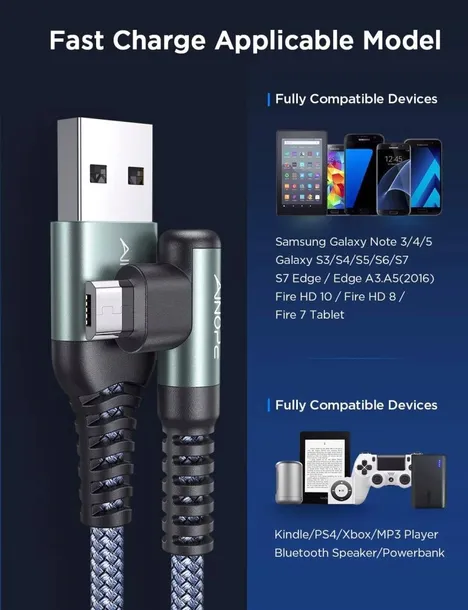 Szybkie Ładowanie i Synchronizacja: Ten kabel Micro USB zapewnia prędkość transmisji danych do 480 Mb/s, a prędkość ładowania jest wystarczająco duża, aby zapewnić szybkie ładowanie i przesyłanie danych.
