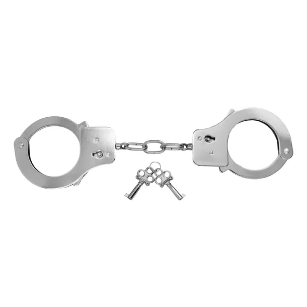 Profesjonalnie wykonane kajdanki z nierdzewnej chromowanej stali, posiadające podwójny zamek. W komplecie dwa kluczyki.
