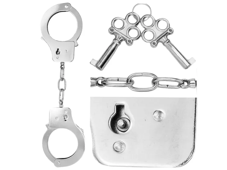 Elementy zestawu kajdanek; kajdanki, dwa kluczyki