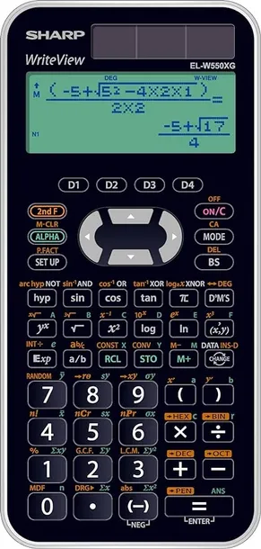 - Kalkulator naukowy szkolny z wyświetlaczem WriteView, wejściem D.A.L. (bezpośrednia logika wejścia algebraicznego) i 4-liniowym wyświetlaczem z matrycą punktową 96 x 32 i zasilaniem TWIN (akumulator słoneczny i zapasowy). Do egzaminów maturalnych w Bawarii i Badenii-Wirtembergii.