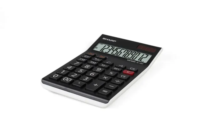 Kalkulator z dużym 12-miejscowym wyświetlaczem idealnie nadaje się do pracy w biurze.