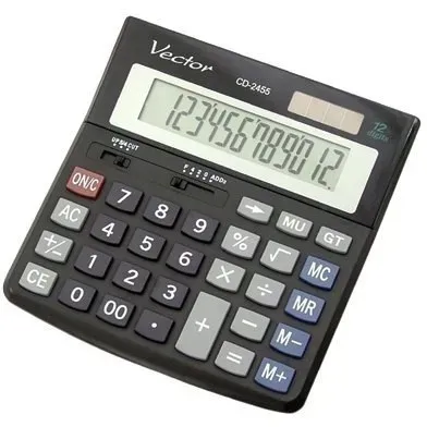 Kalkulator Vector biur. CD-2455_ -12 pozycyjny -podwójne zasilanie -obliczanie marży -suma końcowa GT -wymiary 160x155x35 mm _- jednostka sprzedaży 1 sztuka
