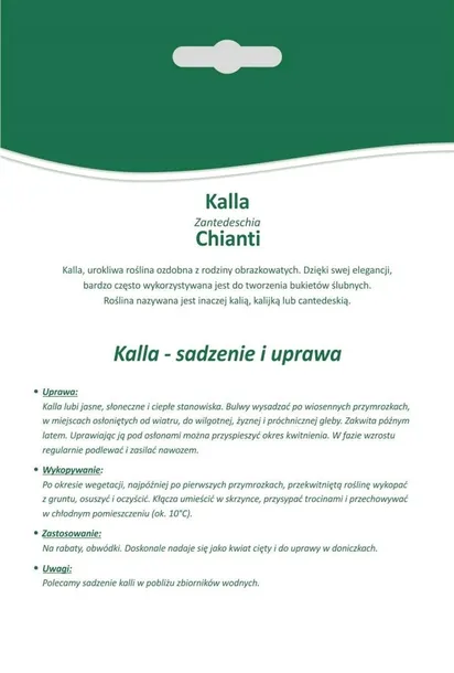 Wybierz Kallę Chianti i wprowadź do swojego ogrodu elegancki, wyrazisty akcent, który będzie przyciągał uwagę przez całe lato.