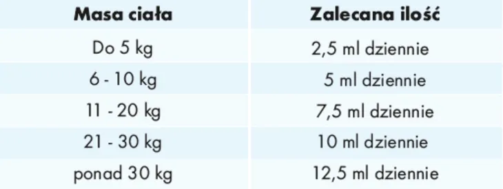 Produkt należy podawać w ilości przedstawionej w tabeli. KalmAid podaje się po zmieszaniu z karmą. Wstrząsnąć przed użyciem.