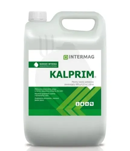 Płynny nawóz potasowy stosowany dolistnie lub doglebowo przez system nawodnieniowy (fertygacja). KALPRIM zapobiega niedoborom potasu oraz likwiduje objawy jego niedoboru na roślinach. Jest szczególnie polecany w okresach zwiększonego zapotrzebowania roślin na potas oraz w warunkach utrudnionego pobierania tego składnika z gleby.