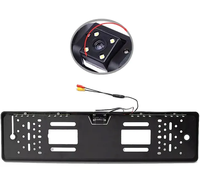 Samochodowa kamera cofania wbudowana w ramkę tablicy rejestracyjnej. Bardzo praktyczne rozwiązanie, nie zajmujące wiele miejsca dzięki ukryciu kamery w ramce tablicy. Dzięki temu kamera jest umieszczona w idealnej pozycji i znacznie ułatwia parkowanie, wykrywając nawet nisko położone przeszkody których nie jesteśmy w stanie zauważyć korzystając z lusterka wstecznego bądź tylnej szyby. Dołączony komplet okablowania umożliwia szybkie i komfortowe podłączenie całego urządzenia do dowolnego monitora wyposażonego w standardowe wejście Video.