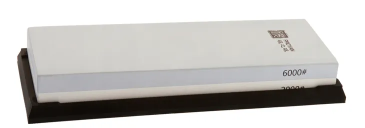 Ceramiczna osełka o gradacjach 2000/6000. Powierzchnia ścierna ma rozmiar 20 centymetrów na 7 centymetrów.