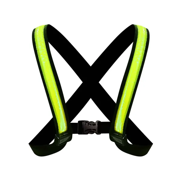 Trwałe, nylonowe szelki z wbudowanym oświetleniem LED z technologią światłowodów poliuretanowych. Płynnie regulowana długość i szerokość mocowania. 4 tryby pracy: światło stałe / światło migające wolno / światło migające szybko / światło wyłączone. Wysoka odporność na zachlapania, szelki odpowiednie do użytku w każdych warunkach pogodowych (klasa szczelności - IPX4). Szelki widoczne z odległości do 100 metrów w dobrej linii wzroku. Szelki pokryte materiałem odblaskowym - dodatkowa widoczność, gdy pasek LED nie jest używany. Łatwe zakładanie i zdejmowanie szelek. Elastyczne, szybkie zapięcie na klips, na wysokości klatki piersiowej. Szelki wygodne w noszeniu, nawet na grubej kurtce. Łatwo dostępny włącznik/wyłącznik. Długa żywotność baterii: światło ciągłe do 60 godzin / Wolny błysk do 70 godzin / Szybki błysk do 80 godzin