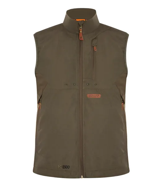 Kamizelka wykonana z wytrzymałej tkaniny RS-1500, uszyta w klasycznym stylu. Dodatkowa kieszeń na piersi zapinana na zamek.
