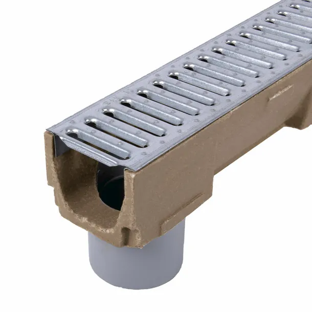 Kanały polimerobetonowe wyprodukowane są z ulepszonej mieszanki poliestrowej, żywicy oraz kruszywa kwarcowego. Dzięki temu polimerobeton jest wysoce odporny mechanicznie i chemicznie, przewyższając pod tym względem tradycyjny beton. Klasa obciążenia kanału A15 sprawia, że są one odpowiednie na chodniki, tarasy rowerowe, alejki oraz obszary przydomowe.