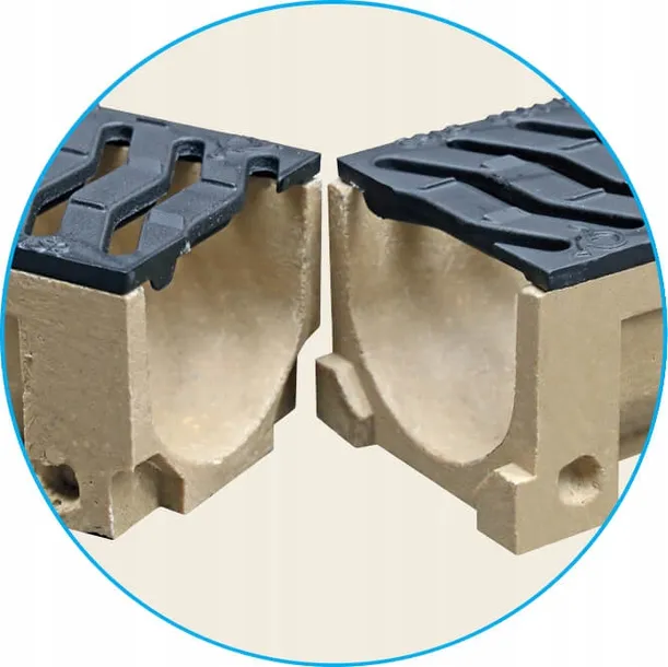 Kanały polimerobetonowe wyprodukowane są z ulepszonej mieszanki poliestrowej, żywicy oraz kruszywa kwarcowego. Dzięki temu polimerobeton jest wysoce odporny mechanicznie i chemicznie, przewyższając pod tym względem tradycyjny beton. Klasa obciążenia kanału B125 sprawia, że są one odpowiednie na obszary zwiększonego ruchu pieszego, tereny parkingowe dla samochodów osobowych, przydomowe garaże.