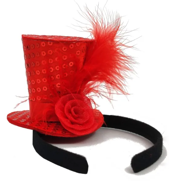 Kapelusik burleskowy na opasce to wyjątkowy, stylowy dodatek inspirowany kabaretowym klimatem dawnych lat. Idealny na imprezy tematyczne, wieczory panieńskie, występy taneczne, sesje zdjęciowe czy bale przebierańców.