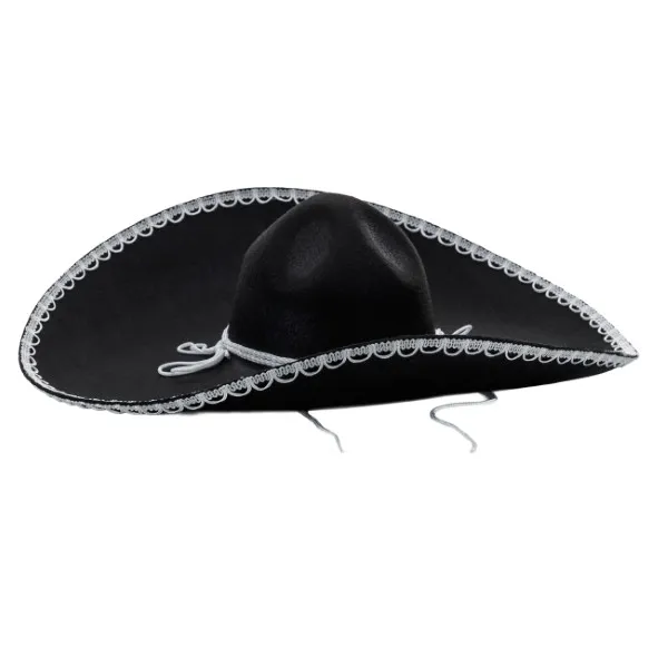 Elegancki czarny kapelusz to doskonały dodatek do kostiumów inspirowanych tradycyjnym strojem mariachi, kowboja z południa czy meksykańskiego tancerza. Wykonane z lekkiego, lecz solidnego materiału, zachowuje swój kształt i prezentuje się bardzo efektownie.