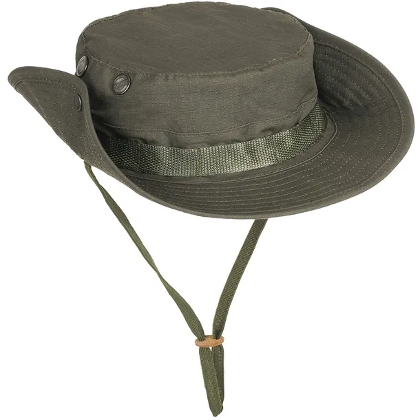Kapelusz wojskowy wykony z 100% bawełny, która została wzmocniona siatką Rip Stop. Materiał jest szybkoschnący, oddychający i lekki.