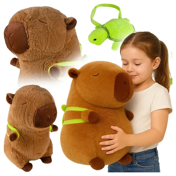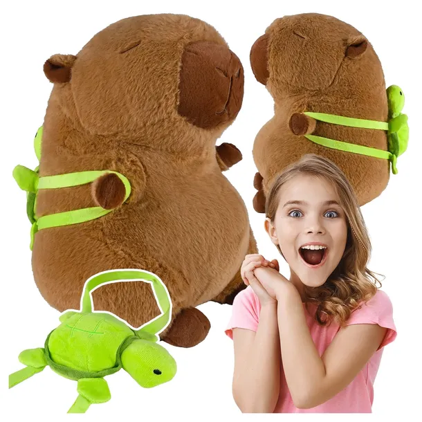 🎈 Wyjątkowy design: Kapibara z zielonym plecakiem w kształcie żółwia.