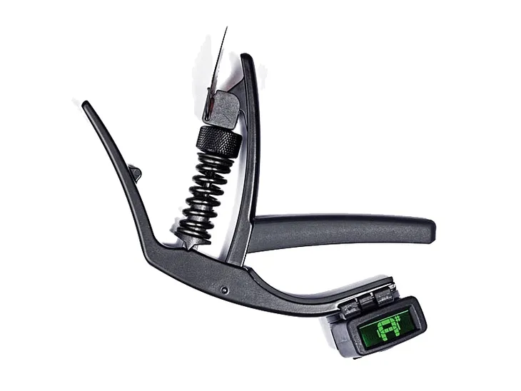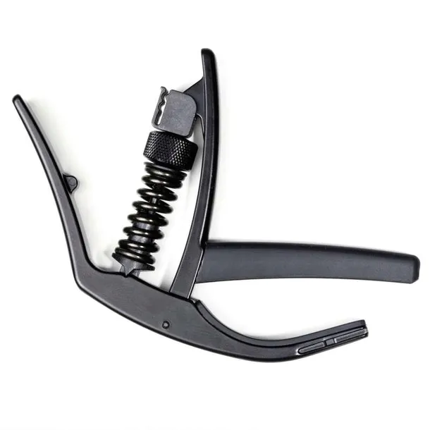 Kapodaster w kolorze czarnym do gitary elektrycznej lub akustycznej z wygiętym radiusem podstrunnicy. Opatentowana geometria TRI-ACTION zmniejsza siłę napięcia niezależnie od profilu gryfu. Kapodaster ma możliwość regulacji nacisku na struny. Zamontowano uchwyt na kostki. Konstrukcja lekka z aluminium. Pasuje do gitar 6 i 12 strunowych.