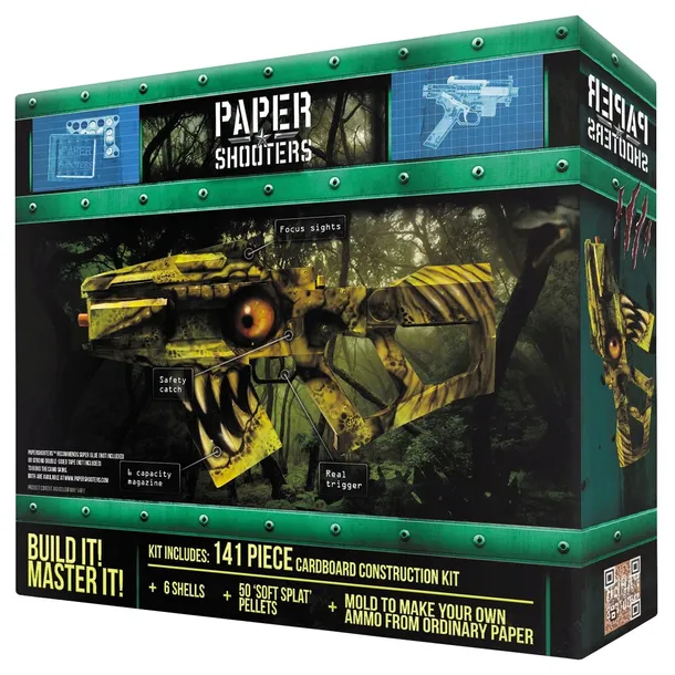Karabin Paper Shooters Green Spit jest wykonany z polimeru oraz elementów kartonowych, które przy użyciu kleju możemy łączyć i modyfikować, nadając zabawce ostateczną formę. Model wykorzystuje magazynki oraz atrapy łusek dla zwiększenia realizmu, i wymaga każdorazowego przeładowania w celu ekstrakcji łuski.