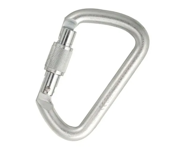 Asymetryczny karabinek stalowy o dużej pojemności i prześwicie, do wpięcia do konstrukcji stalowych. Dzięki dużej pojemności można wpiąć do niego wiele elementów. Posiada ręczny system zakręcania oraz system keylock. Każdy egzemplarz ma swój indywidualny numer.
