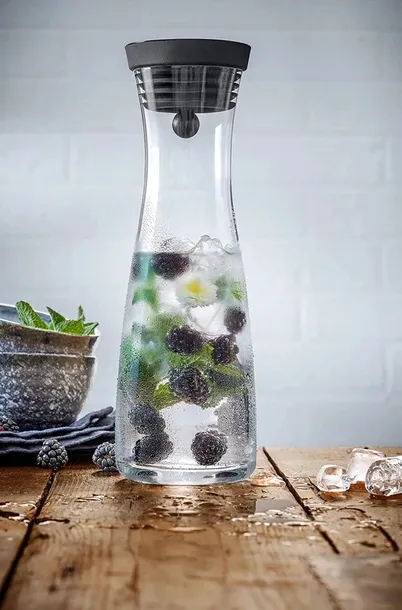 Karafka dzięki szerokiej podstawie jest stabilna. Przeznaczona do mycia ręcznego lub w zmywarce - zakrętka.