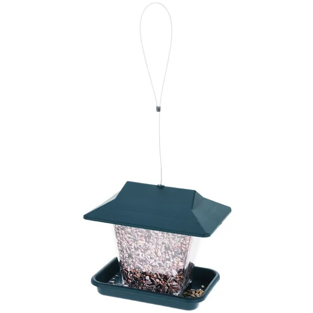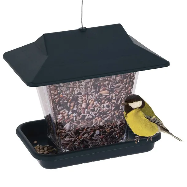 PRAKTYCZNY - Karmnik dla ptaków na ziarno lub karmę. Karmnik ma wymiary 19,5 x 14,5 x 17,5 cm.