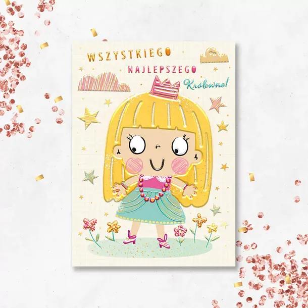 Karnet wydrukowano na wysokiej jakości papierze formatu A5. Karnet uszlachetniono złotą folią i tłoczeniem. W zestawie jest koperta.