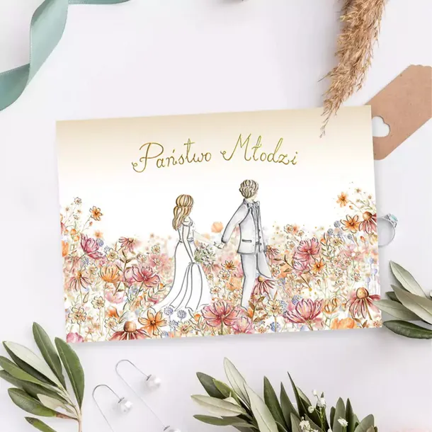 Karnet został wydrukowany na wysokiej jakości papierze. W zestawie znajduje się koperta. Złocony i tłoczony, tekst życzeń jest w środku.