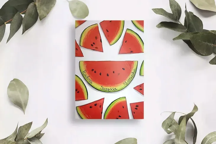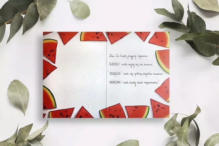 Karnet w formacie B6. Wydrukowany na wysokiej jakości papierze. Karnet złocony z wytłoczonymi wzorami. W zestawie kolorowa koperta.