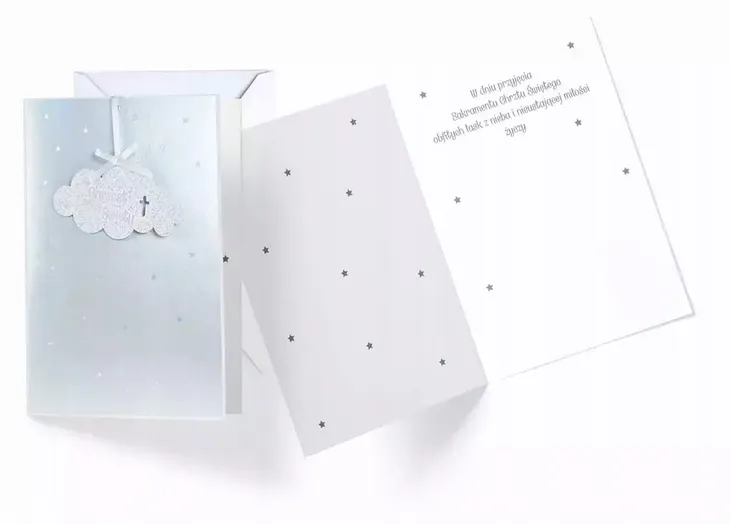 Kartka B6 z ozdobnej serii Dream Cards na Chrzest - nieduża, ale robi wrażenie dzięki atrakcyjnej kolorystyce i ciekawym zdobieniom. To idealny wybór łączący przyjazną cenę z jakością. Cechy szczególne: wielkość: B6, 16.6 x 11.7 cm po złożeniu, koperta: w zestawie, kolorowa, zdobienia: różnorodne, bogate (w zależności od wzoru: przyklejane dekoracje, elementy biżuteryjne, odstawniki, brokat metaliczne folie, tłoczenia itp.), okazja: Chrzest