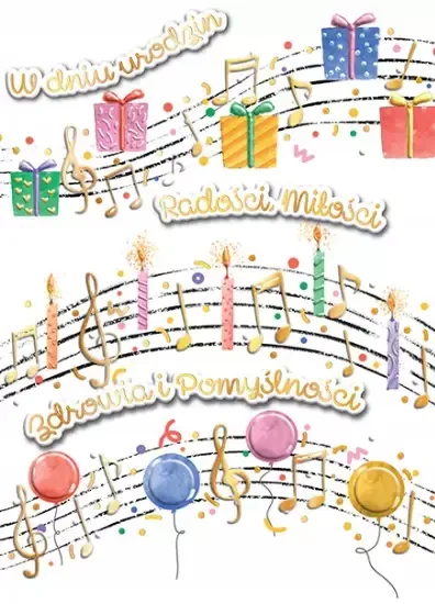 Ten wysokiej jakości karnet ma grafikę, która przykuwa wzrok. Uszlachetniony jest złotem i tłoczeniem. W zestawie znajduje się kolorowa koperta.