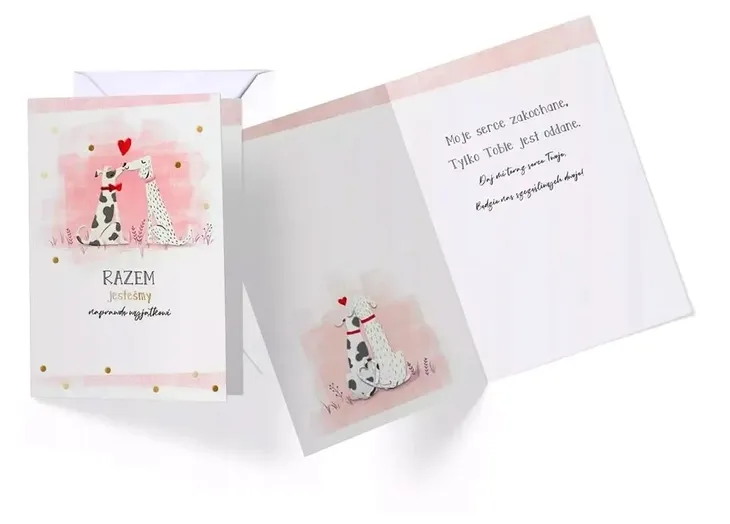 Kartka PR jest zdobiona przynajmniej dwoma rodzajami uszlachetnień - metaliczne lub perłowe folie, brokat, tłoczenie itp.- tyle piękna w takim drobiazgu! Każda kartka Passion Premium ma kolorowe wnętrze z tekstem wyjątkowych życzeń i grafiką, w komplecie jest także dopasowana kolorystycznie koperta. Cechy szczególne: wielkość: B6, 16.6 x 11.7 cm po złożeniu, koperta: dopasowana w zestawie, zdobienia: przynajmniej dwa rodzaje, często więcej - złota, srebrna lub perłowa folia, brokat, tłoczenia, wnętrze kartki: kolorowe, z życzeniami, okazja: Walentynki