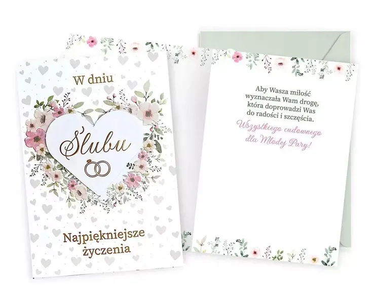 Kartka B6 z ozdobnej serii Dream Cards na ślub - nieduża, ale robi wrażenie dzięki atrakcyjnej kolorystyce i ciekawym zdobieniom.