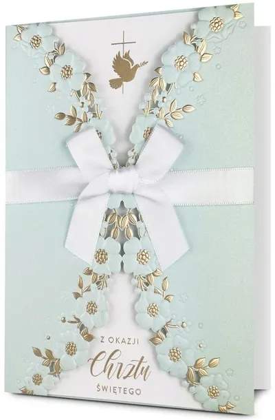 Kartka jest bogato i różnorodnie zdobiona (zależnie od wzoru: metaliczna folia, lakier perłowy, brokat, przyklejone elementy 3D - wypukłe wstawki papierowe, elementy biżuteryjne, tłoczenia).