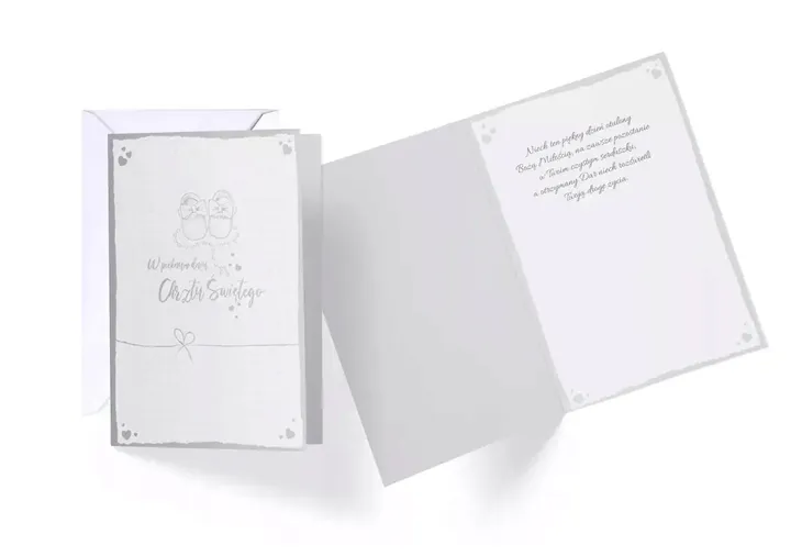 Karnet Vision w powiększonym tzw. Angielskim formacie 14.0 x 19.0 cm. Wykonane z niezwykłą dbałością o szczegóły, zdobione folią holograficzną i w całości pokryte folią matową dla podkreślenia efektu prostoty i elegancji. Wewnątrz znajduje się tekst życzeń, a całość uzupełnia dedykowana srebrna koperta. Uwaga. Mix wzorów – dostępne różne wersje produktu – wysyłka losowa. Cena dotyczy 1 sztuki.
