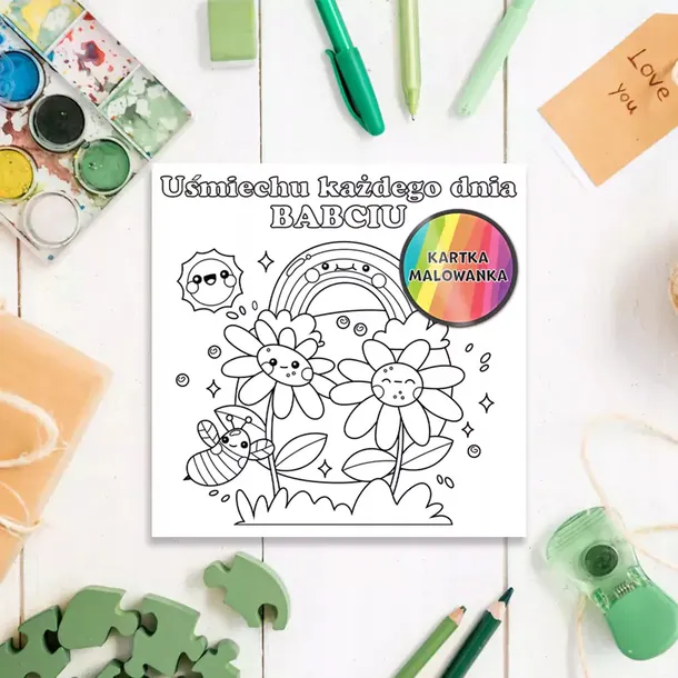 Karnet kolorowanka, tęcza dla babci
